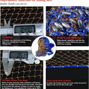 Drasry Saltwater Fishing Cast Net for Bait Trap with Heavy Sinkers Fish Throw Net. Size 3ft/4ft/5ft/6ft/7ft/8ft/9ft/10ft Radius Freshwater Nets